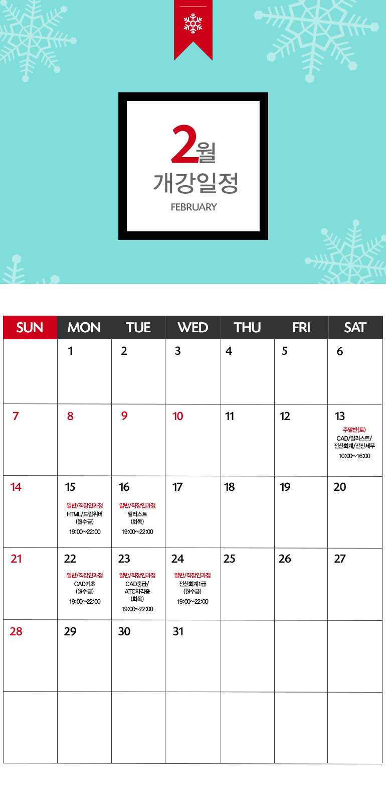 [수원캠퍼스] 2월 개강일정