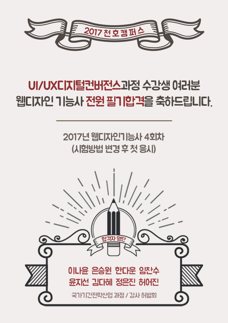UI/UX디지털컨버전스반 웹디자인기능사 전원 필기합격!